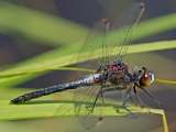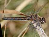 The Band-winged Meadowhawk is our only meadowhawk species that has a large amber patch at the base of all 4 wings which covers 1/3 to 1/2 of the wing surface in both males and females (other species may have a very small amber patch at the base of the wings) | The Black Meadowhawk is different from our other meadowhawks because the males have no red on their body.   Females are generally darker than females of other species. |