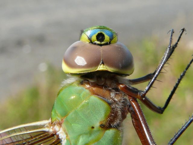 A closeup of the top of the face showing the diagnostic blue and black bullseye pattern